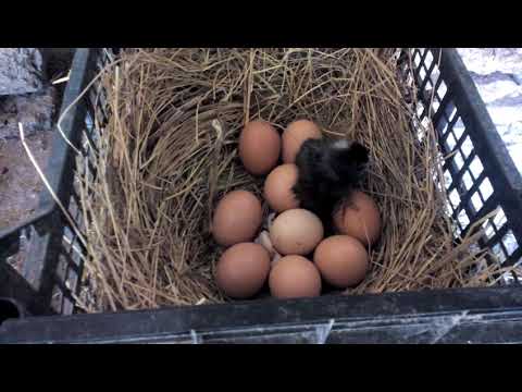 Дребничкото кокошле, което легна да мъти на 08.04. ни изненада тази сутрин. Първото пиленце се беше излюпило поне преди час - два. Не очаквахме люпенето да започне толкова рано.
